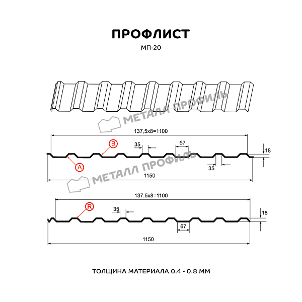 Профнастил МП-20 относится к универсальным cтройматериалам. В отличие от многих других видов профлиста, этот изготавливается в трёх версиях: А, В и R. Разновидности А и В применяются для кровельных работ, монтажа заборов, облицовки стен, для внутренней обшивки промышленных зданий, гаражей, ангаров и т.п. Профиль МП-20 с буквой R отличается наличием специального желобка для отвода конденсата и используется в качестве кровельного покрытия. В зависимости от зоны применения, данный профлист выпускается из оцинкованной стали толщиной от 0,4 до 0,8 мм. Важная деталь: несмотря на цифру 20 в названии, на самом деле высота этого профнастила – 18 мм. Он является материалом эконом-класса и обладает доступной ценой. МП-20 – прочный и долговечный стройматериал, характеристики которого высоко оценивают не только частные домовладельцы, но и крупные застройщики. Он отличается хорошей несущей способностью, переносит значительные статические нагрузки и эффективно противостоит нагрузкам динамическим.Покрытие NormanMP®: