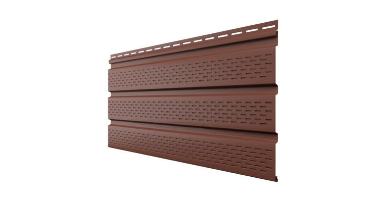 ТН, Софиты, полностью перфорированный, каштан, 3м используется для оформления потолка в нежилых помещениях, таких как террасы, гаражи, беседки и пр. Защищает от воздействия неблагоприятных погодных условий. Способствует наилучшей вентиляции, препятствует проникновению птиц и насекомых под кровлю. Нетоксичный материал. Сочетается почти со всеми видами стен и кровель.
